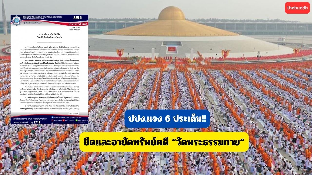HOTNEWS: ปปง.แจง 6 ประเด็นทรัพย์สินในคดีที่เกี่ยวข้องกับ “พระธัมมชโย”