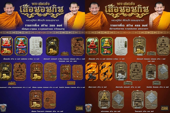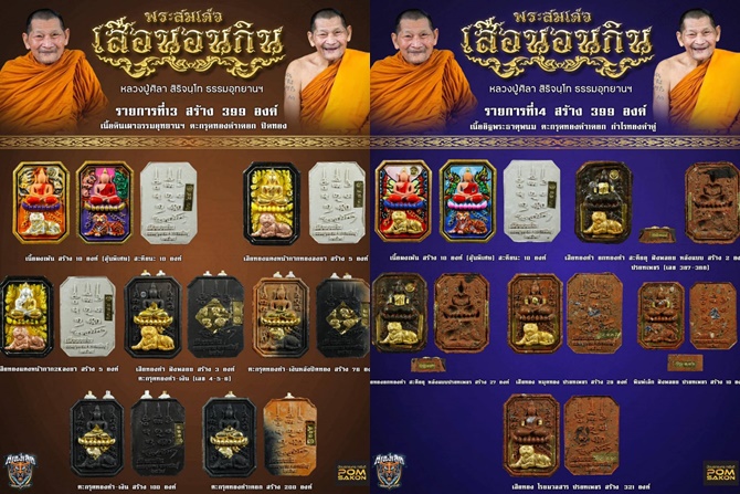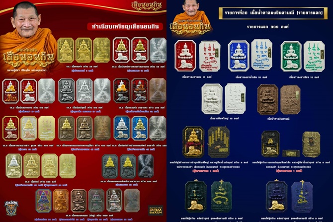 1.เหรียญหล่อสร้าง 208 องค์ 2.เนื้อพิเศษช้างสร้าง 99 องค์ 3.เหรียญปั้มสร้าง 6,278องค์ 4.เนื้อผงชั้นครูสร้าง 18,392 องค์ 6.รายการเเจก 999องค์ รวมรายการจองทั้งหมดสร้างเเค่ 24,977 องค์