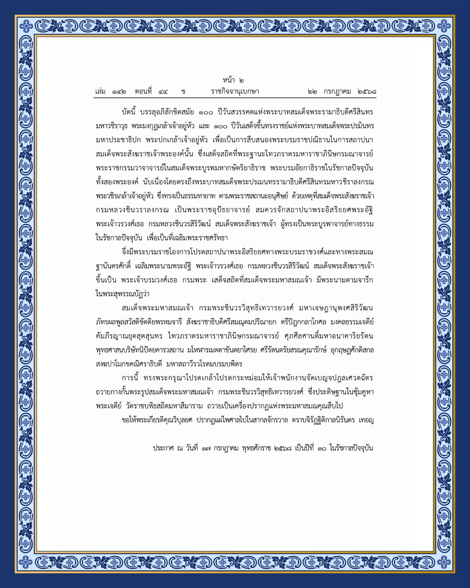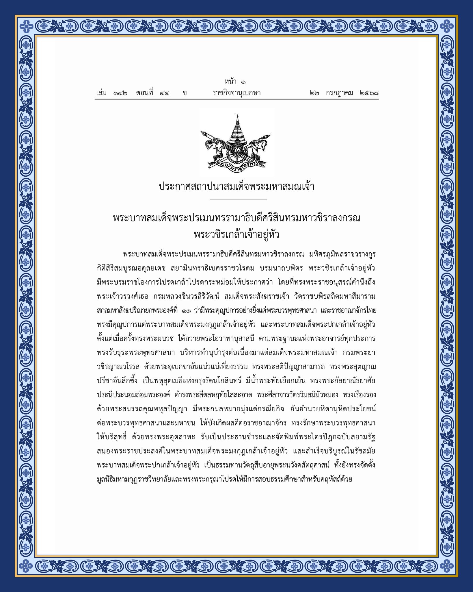 ประกาศ ณ วันที่ ๑๗ กรกฎาคม พุทธศักราช ๒๕๖๘ เป็นปีที่ ๑๐ ในรัชกาลปัจจุบัน