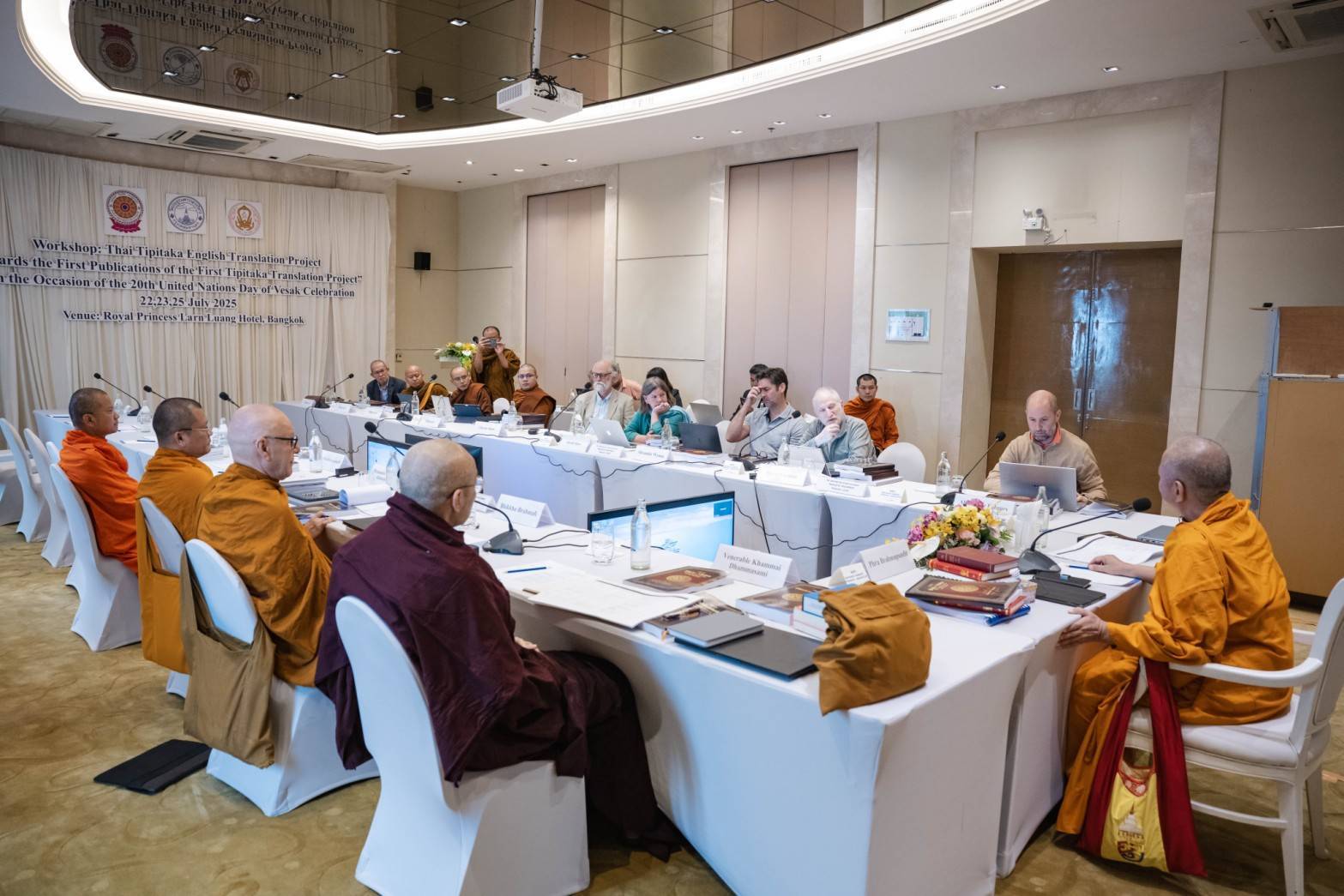 วันที่ 22 กรกฏาคม 2568 พระเมธีวัชรบัณฑิต หรือ “เจ้าคุณหรรษา” เผยว่า ระหว่าง 22-25 กรกฎาคม 2568 ณ วัดประยุรวงศาวาส พระพรหมบัณฑิต กรรมการมหาเถรสมาคม ในฐานะประธานกรรมการจัดทำพระไตรปิฏกภาษาอังกฤษ และประธานบรรณาธิการการแปล ได้นิมนต์และเชิญคณะผู้แปล และคณะบรรณาธิการนานาชาติ ประกอบด้วย ดร. พระคำหมาย ธรรมสามิ (ประเทศพม่า) พระพรหมาลี (ประเทศออสเตรเลีย) ดร.อเล็กซ์ รุยซ์ ฟัลเกส (ประเทศสเปน) ดร.ไบรอัน เลฟแมน (ประเทศแคนาดา) ดร.อเล็กซานเดอร์ วินน์ ดร.ซาราห์ ชอว์นายชาร์ลส์ ชอว์ (ประเทศอังกฤษ) มาร่วมประชุมเพื่อสรุปเนื้อหา ทั้ง 3 เล่ม คือ พระวินัยปิฏก เล่ม 1 พระสุตตันตปิฏก เล่ม 9 และพระอภิธรรมปิฏก เล่ม 34
