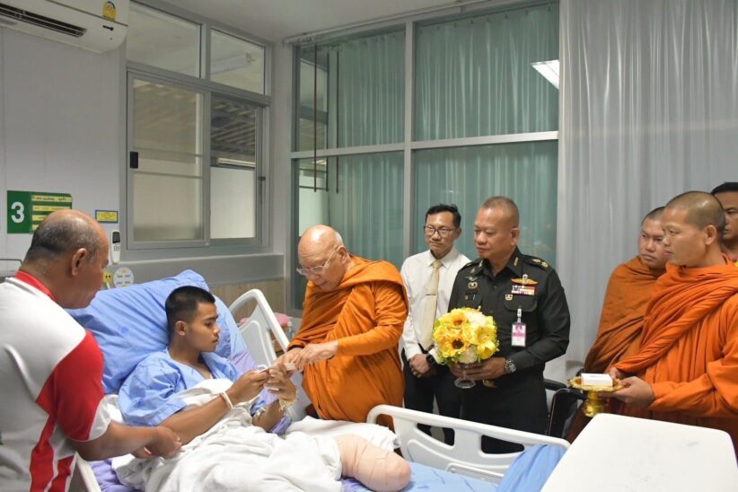 วันที่ 22 กรกฏาคม 2568 สมเด็จพระมหาธีราจารย์ กรรมการมหาเถรสมาคม เจ้าคณะใหญ่หนเหนือ เจ้าอาวาสวัดพระเชตุพนวิมลมังคลาราม ในฐานะประธานคณะกรรมการฝ่ายสาธารณสงเคราะห์ ของมหาเถรสมาคม เดินทางมาเยี่ยมบำรุงขวัญทหารที่ประสบเหตุเหยียบทุ่นระเบิดในระหว่างปฏิบัติหน้าที่ ที่เนิน 481 ช่องบก จังหวัดอุบลราชธานี จำนวน 3 นาย ณ โรงพยาบาลค่ายสรรพสิทธิประสงค์ โดยมี พลตรี อัครพนธ์ มูลประดับ ผู้บัญชาการมณฑลทหารบกที่ 22 และคณะผู้บังคับบัญชาถวายการต้อนรับ