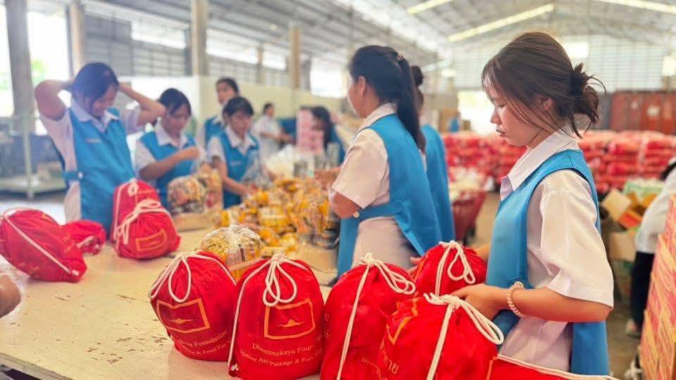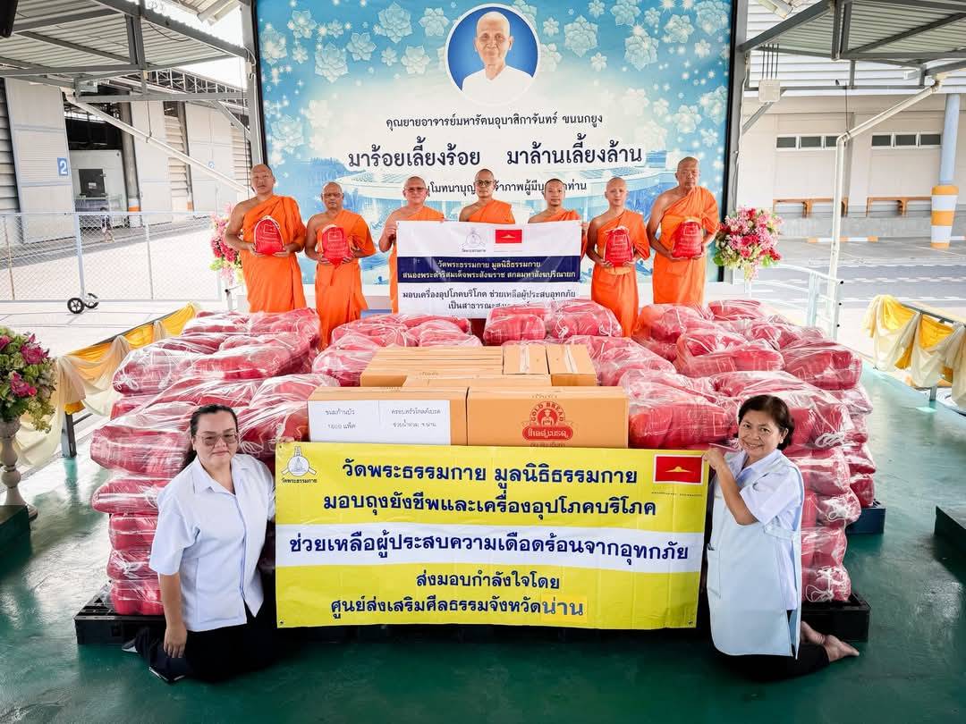 วันนี้ 26 กรกฏาคม 2568 พระครูปลัดรัตนวีรวัฒน์ (รังสฤษดิ์ อิทฺธิจินฺตโก) เจ้าอาวาสวัดพระธรรมกาย มอบหมายให้พระมหานพพร ปุญฺญชโย ป.ธ.๙ ผู้ช่วยเจ้าอาวาสวัดพระธรรมกาย และพระธีระพัฒน์ กุลธีโร หัวหน้าสำนักงานประสานงานเครือข่ายภายในประเทศ มอบถุงยังชีพจำนวน 1,100 ถุง ประกอบด้วย ข้าวสาร 2,500 กิโลกรัม ปลากระป๋อง 7,700 กระป๋อง บะหมี่สำเร็จรูป 7,7100 ซอง และได้รับการอุปถัมภ์จากบริษัท ขนมปังโกลด์เบรด จำกัด มอบขนมกว่า 2,000 ชิ้น รวมน้ำหนักทั้งสิ้นกว่า 4 ตันเพื่อมอบแก่ผู้ประสบอุทกภัยในพื้นที่ภาคเหนือได้แก่จังหวัดน่าน และจังหวัดแพร่ เป็นสาธารณสงเคราะห์ซึ่งจะนำส่งให้ถึงมือผู้ประสบภัยผ่านเครือข่ายกัลยาณมิตรศูนย์ส่งเสริมศีลธรรมจังหวัดน่านและจังหวัดแพร่ในวันพรุ่งนี้