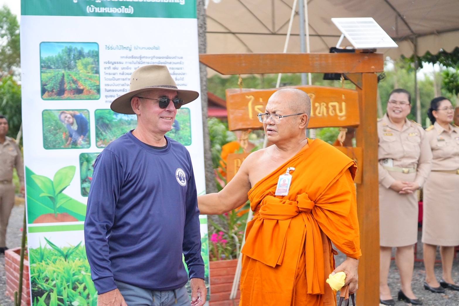 ต่อจากนั้นเวลา 13.00 น. คณะกรรมการหมู่บ้านรักษาศีล 5 ได้เดินทางไป “ไร่ร่มไม้ใหญ่” เพื่อดูการประกอบอาชีพตามหลัก “เศรษฐกิจพอเพียง” ของคู่สามีภรรยาชาวไทยและออสเตรเลีย