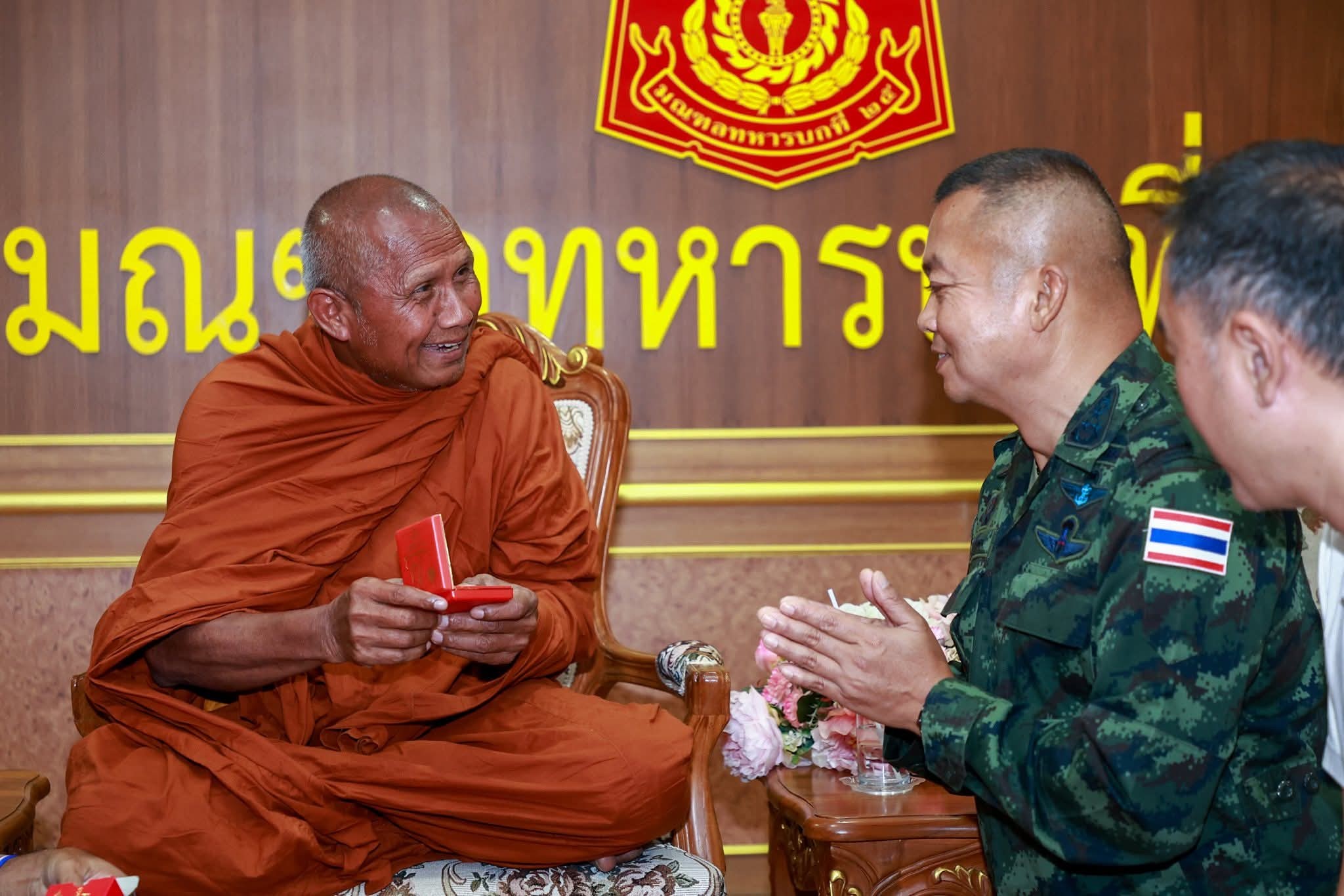 วันที่ 26 ส.ค.68 เวลา 18.30 น. พล.ท.บุญสิน พาดกลาง มทภ.2 รับมอบเงินช่วยสร้างถนนและกำแพง บริเวณภูมะเขือ จากพระธรรมวชิรญาณโกศล (หลวงพ่อเยื้อน ขนฺติพโล)ร่วมกับคณะลูกศิษย์ 1,000,000 บาทและ หลวงพ่อบุญช่วย ปุญญวัณโต วัดภูริทัตตปฏิปทาราม จ.ปทุมธานี 1,000,000 บาท รวมเป็นเงินทั้งหมด 2,000,000 บาท เพื่อสนับสนุนภารกิจการปกป้องอธิปไตยของทหารตามแนวชายแดน ไทย-กัมพูชา ณ ห้องรับรอง กองบัญชาการ มณฑลทหารบกที่ 25 จ.สุรินทร์ โดยมี พ.อ.อัครสิทธิ์ ปะกิระตา รอง ผบ.มทบ.25 และ นายวีรศักดิ์ พิษณุวงษ์ ประธานหอการค้าจังหวัดสุรินทร์ รวมรับมอบเงินช่วยเหลือฯ ในครั้งนี้
