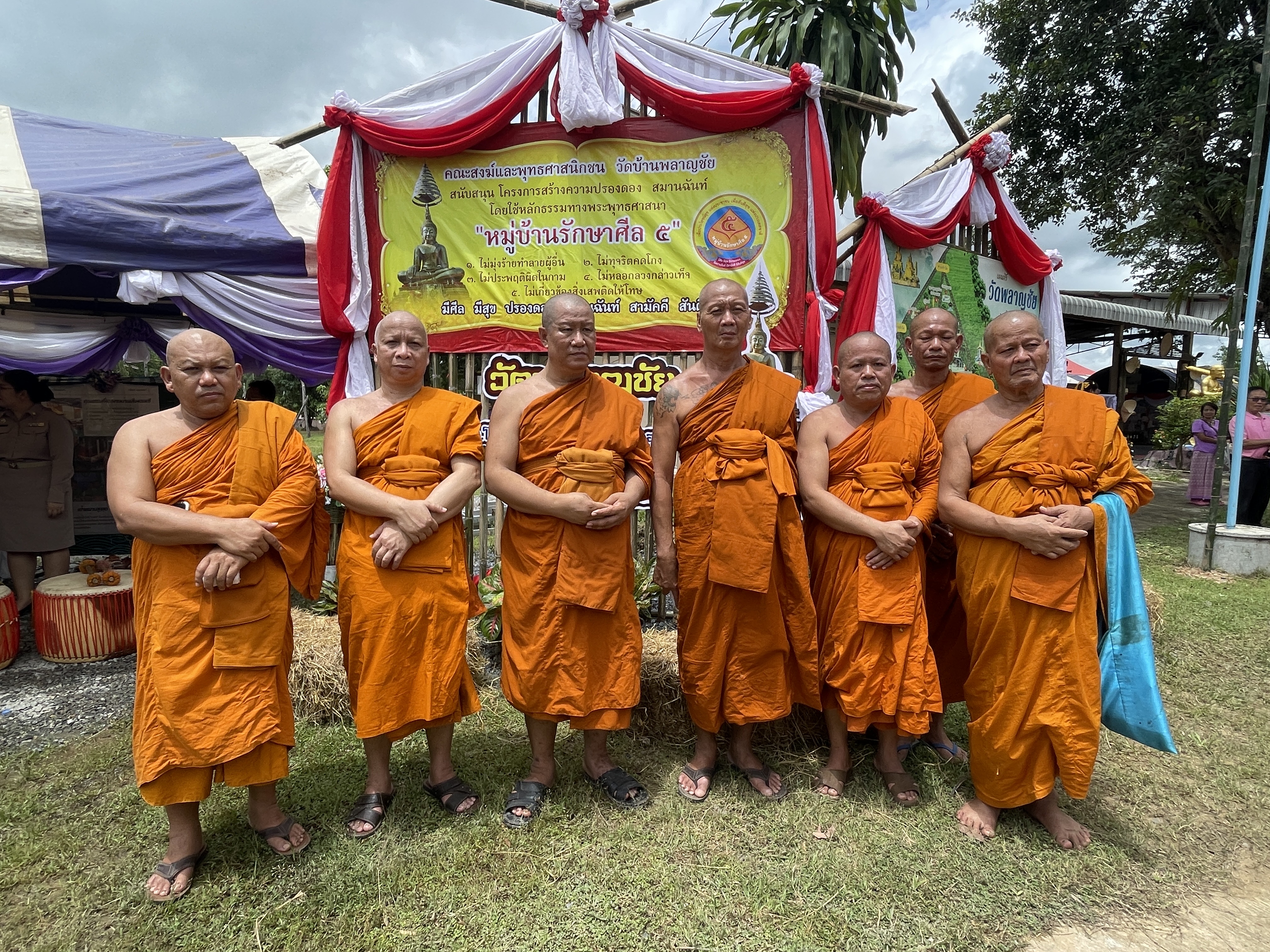 วันที่ 9 กันยายน 2568 เวลา 13.00 น. คณะกรรมการโครงการหมู่บ้านรักษาศีล 5 ประจำหนตะวันออก ได้ลงพื้นที่ประเมินผลการดำเนินงานของบ้านพลาญชัย ตำบลโนนก่อ อำเภอสิรินธร จังหวัดอุบลราชธานี โดยมีรองเจ้าคณะจังหวัดอุบลราชธานี 5 รูปคือ พระศรีวิสุทธิมุนีพระครูเวตวันวรกิจ พระอรุณธรรมโกศล พระครูวีรวงศ์บรรหาร และเจ้าคณะอำเภอพร้อมคณะสงฆ์อำเภอสิรินธร ในฝ่ายบ้านเมืองประกอบด้วย นายภูษิต น้อยโสภากุล รองผู้ว่าราชการจังหวัดอุบลราชธานี, นายอุทัย อรัมสัจจากุล นายอำเภอสิรินธร, นางณภัศ เทียนชัย ผู้อำนวยการสำนักงานพระพุทธศาสนาจังหวัดอุบลราชธานี, นางพนารัตน์ คนขยัน วัฒนธรรมจังหวัดอุบลราชธานี, พ.ต.อ.ศิริพงค์ สุดา ผู้กำกับการสถานีตำรวจภูธรสิรินธร, นายบุญหลาย คำสิงห์ นายกองค์การบริหารส่วนตำบลโนนก่อ, นายเพรียวพันธ์ จันสุพรม ผู้ใหญ่บ้านพลาญชัย พร้อมด้วยคณะกรรมการหมู่บ้าน ผู้นำชุมชน หน่วยงานท้องถิ่น ตลอดจนประชาชนร่วมให้การต้อนรับอย่างพร้อมเพรียง บรรยากาศเป็นไปด้วยความอบอุ่นและเต็มไปด้วยรอยยิ้ม