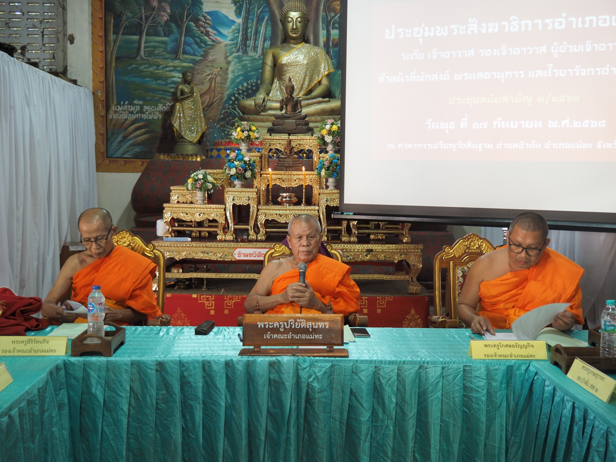 วันพุธที่ 17 กันยายน 2568 เวลา 13.00 น. ณ วัดสันฐาน อำเภอแม่ทะ จังหวัดลำปาง พระครูปริยัติสุนทร เจ้าคณะอำเภอแม่ทะ เป็นประธานการประชุม พร้อมด้วยพระสังฆาธิการ เจ้าอาวาส ไวยาวัจกร และกรรมการวัด โดยมี นายคนึงกิจ พรหมนุชานนท์ ผู้อำนวยการสำนักงานพระพุทธศาสนาจังหวัดลำปาง พร้อมเจ้าหน้าที่ ร่วมประชุมคณะสงฆ์อำเภอแม่ทะ ถวายความรู้เรื่องการแต่งตั้งไวยาวัจกรวัด การจัดทำบัญชีรายรับรายจ่าย การกรอกข้อมูลตามมติมหาเถรสมาคม ร่วมกับตำรวจสถานีภูธรอำเภอแม่ทะ การลงทะเบียนระบบ e-Donation ร่วมกับเจ้าหน้าที่สรรพากรจังหวัด และการเปิดบัญชีวัดร่วมกับ ร่วมกับเจ้าหน้าที่ธนาคารกรุงไทย