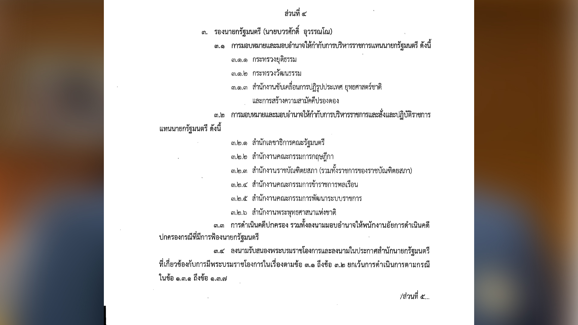วันที่ 25 กันยายน 2568 นายอนุทิน ชาญวีรกูล นายกรัฐมนตรี ได้เซ็นต์คำสั่งนายกรัฐมนตรี มอบหมายและมอบอำนาจให้รองนายกรัฐมนตรีและรัฐประจำสำนักนายรัฐมนตรี ให้ปฎิบัติราชการแทนนายกรัฐมนตรี ในส่วนที่เกี่ยวข้องกับคณะสงฆ์โดยตรง คือ “สำนักงานพระพุทธศาสนาแห่งชาติ” นายกรัฐมนตรีมอบให้ “ดร.บวรศักดิ์ อุวรรณโณ” รองนายกรัฐมนตรี กำกับดูแลสำนักงานพระพุทธศาสนาโดยตรง โดยไม่ต้องผ่านรัฐมนตรีประจำสำนักนายกรัฐมนตรีเหมือนรัฐบาลยุคก่อน ๆ
