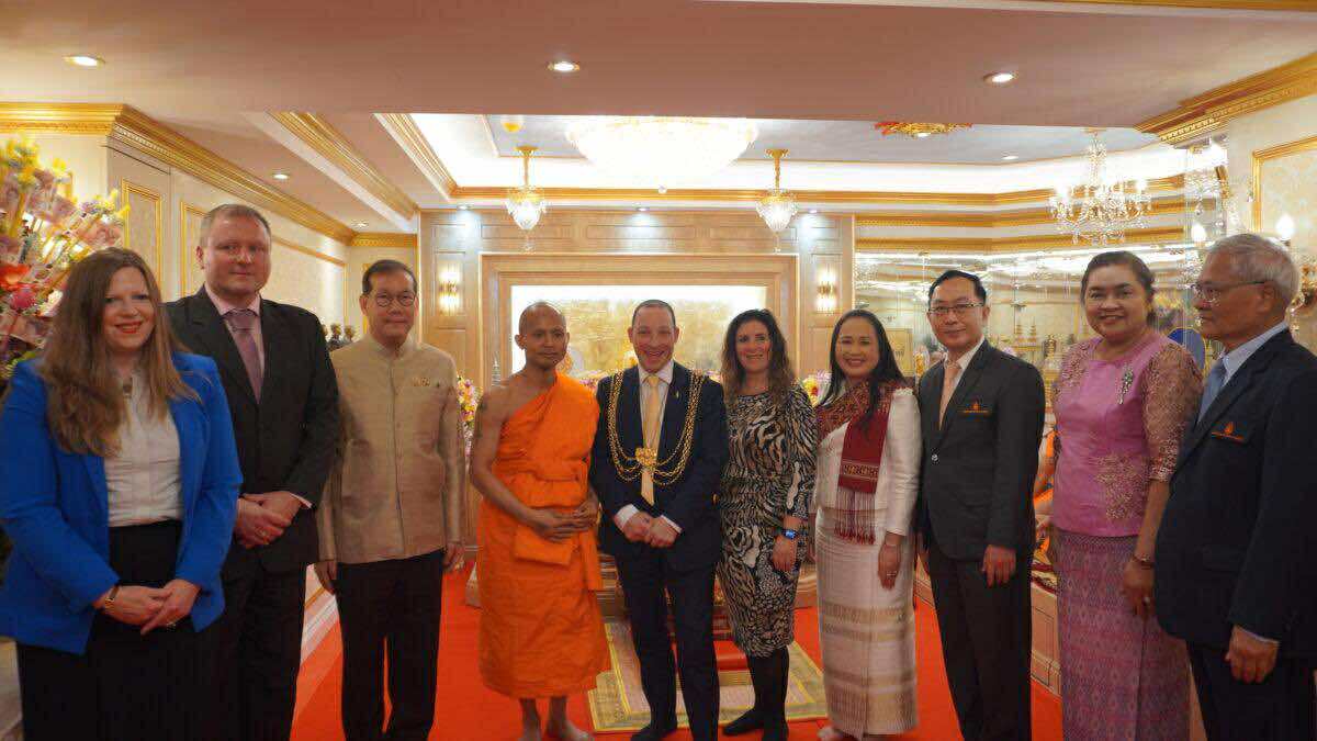 นอกจากนี้พิธีเปิดยังได้รับเกียรติจาก มิสเตอร์แดน โคเฮน นายกเทศมนตรีเมืองลีดส์ (The counciller Dan Cohen the Lord Mayor of Leeds) นายสุรพล เพชรวรา และ Prof. Martin Seeger กล่าวแสดงความยินดีในโอกาสการก่อตั้งศูนย์ฯ ก่อนผู้มีเกียรติร่วมกันเปิดผ้าแพรคลุมป้าย “ศูนย์ภาษาและวัฒนธรรมไทย” อย่างเป็นทางการ ณ บริเวณหน้าอาคารวัดพุทธาราม ท่ามกลางบรรยากาศอบอุ่นและเปี่ยมด้วยมิตรภาพระหว่างสองชาติ