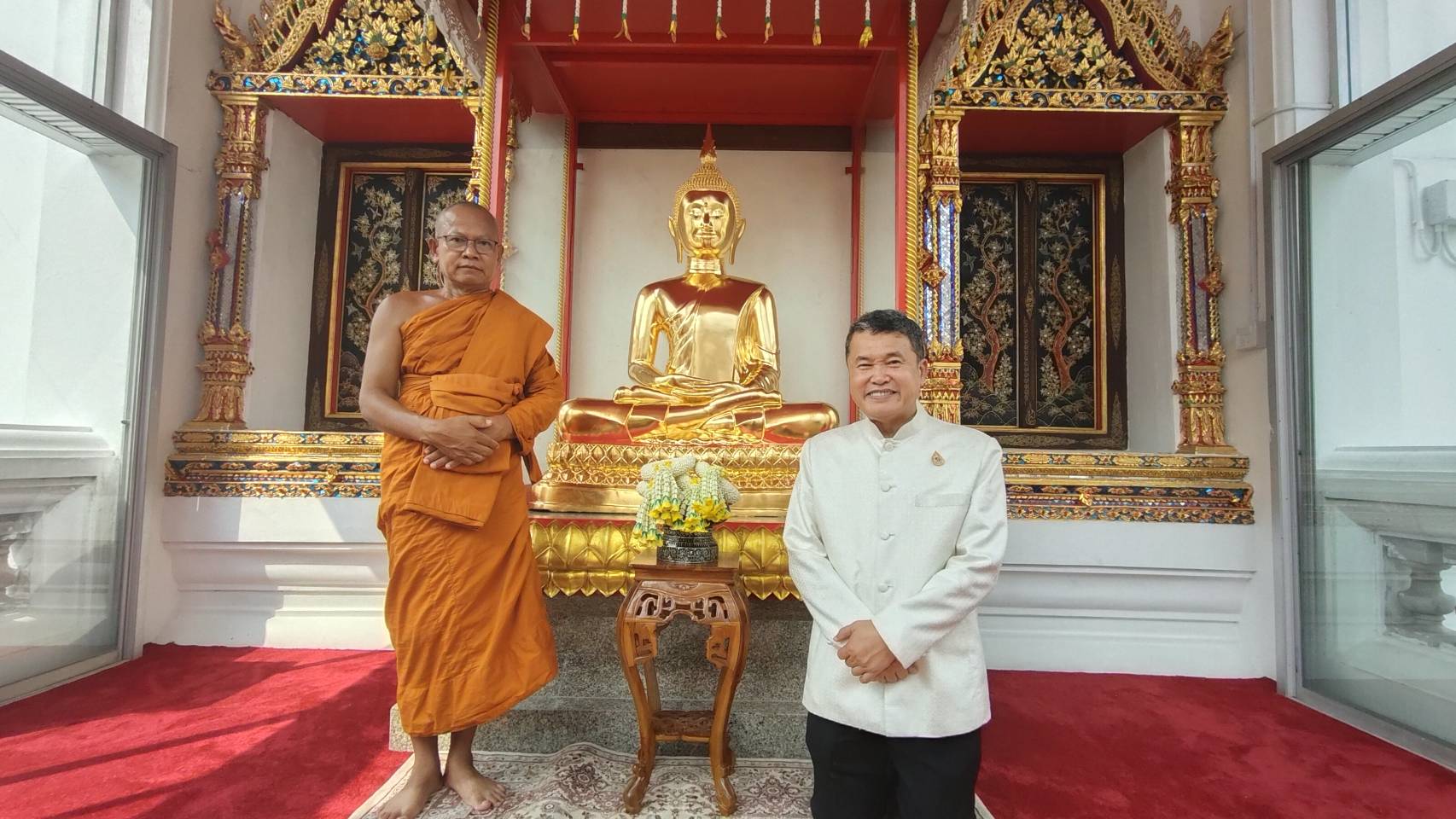 “นับเป็นพระมหากรุณาธิการเป็นอย่างยิ่งในวันพฤหัสบดีที่ 4 ธันวาคม 2568 ที่จะถึงนี้ สมเด็จพระกนิษฐาธิราชเจ้า กรมสมเด็จพระเทพรัตนราชสุดา ฯ สยามบรมราชกุมารี จะเสด็จพระราชดำเนินมายกฉัตรพระมหารามัญเจดีย์ ที่บูรณะขึ้นมาใหม่ สำหรับพระมหารามัญเจดีย์ เป็นเจดีย์ที่ พระบาทสมเด็จพระจุลจอมเกล้าเจ้าอยู่หัวโปรดเกล้าฯ ให้สร้างที่ด้านหลังอุโบสถ เป็นพระเจดีย์ทรงมอญขนาดใหญ่ เพื่อให้คนมอญที่มีความผูกพันกับพระมหาเจดีย์สำคัญของมอญในเมืองมอญคือ พระเจดีย์มุเตาที่เมืองหงสาวดีและพระเจดีย์ชเวดากองเมืองย่างกุ้ง ได้เป็นที่พึ่งทางใจได้กราบไหว้บูชาแทนพระเจดีย์ในเมืองมอญ พระมหารามัญเจดีย์ฐานกว้าง 5 วา 3 ศอก องค์เจดีย์ตั้งอยู่บนฐานสูงและมีลานประทักษิณ มีกำแพงรอบลานประทักษิณทำเป็นรูปเกลียวคลื่นในมหาสมุทร รอบองค์พระมหารามัญเจดีย์ตามคติในเรื่องเขาพระสุเมรุที่เป็นศูนย์กลางจักรวาลและล้อมด้วยมหาสมุทร พระมหารามัญเจดีย์องค์นี้เปรียบเสมือนจักรวาลเช่นเขาพระเมรุ ด้านหลังองค์พระเจดีย์ทางทิศตะวันตกมีบันไดขึ้นองค์พระเจดีย์ บันไดขึ้นทางทิศใต้ และเวลาลงหันหน้าลงทางทิศเหนือ ตามความเชื่อของมอญ จึงขอเชิญชวนพสกนิกรชาวรามัญและชาวไทยร่วมรับเสด็จกรมสมเด็จพระเทพ ในวันดังกล่าว..”