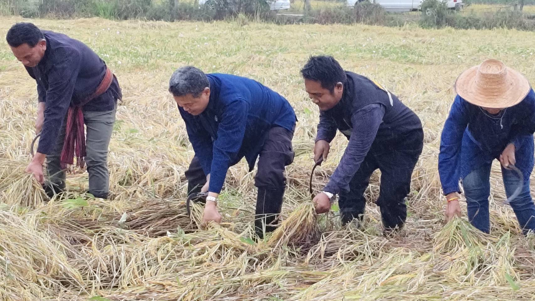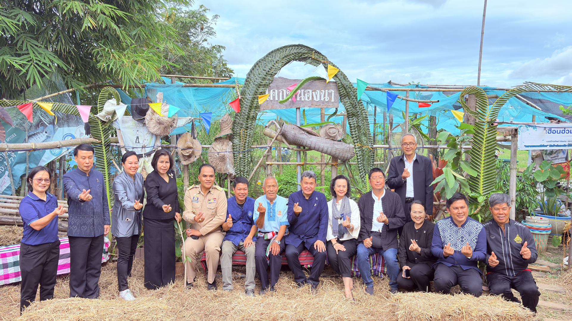 จากนั้น อดีตปลัดกระทรวงมหาดไทย พร้อมคณะ ได้เดินทางไปเยี่ยมชม ศูนย์การเรียนรู้โคกหนองนา หมู่บ้านเศรษฐกิจพอเพียงต้นแบบ ปีงบประมาณ พ.ศ. 2564 บ้านโนนโพธิ์ หมู่ที่ 5 ตำบลอ่างศิลา อำเภอพิบูลมังสาหาร จังหวัดอุบลราชธานี ของนางมาลัย สีแสด เนื้อที่ 3 ไร่ ซึ่งเป็นพื้นที่ต้นแบบและเป็นศูนย์อารยเกษตรเพื่อการเรียนรู้อย่างยั่งยืน โดย นางกนกอร โพธิ์สิงห์ พัฒนาการจังหวัดอุบลราชธานี ได้กล่าวถึงภารกิจสำคัญของกรมการพัฒนาชุมชน ได้แก่ ประชาสัมพันธ์และการรับลงทะเบียนโครงการคนละครึ่งพลัส การขับเคลื่อนงานกองทุนพัฒนาบทบาทสตรี การส่งเสริมการเรียนรู้และสร้างรายได้ตามหลัก โคกหนองนา ร่วมกับหน่วยงานและภาคีเครือข่ายที่เกี่ยวข้อง นอกจากนั้น ยังมีการนำผลผลิตทางการเกษตรจากเครือข่ายโคกหนองนาในพื้นที่ตำบลอ่างศิลา มาจำหน่าย หรือตลาดสีเขียว ซึ่งเข้าร่วมโครงการคนละครึ่งพลัสด้วย