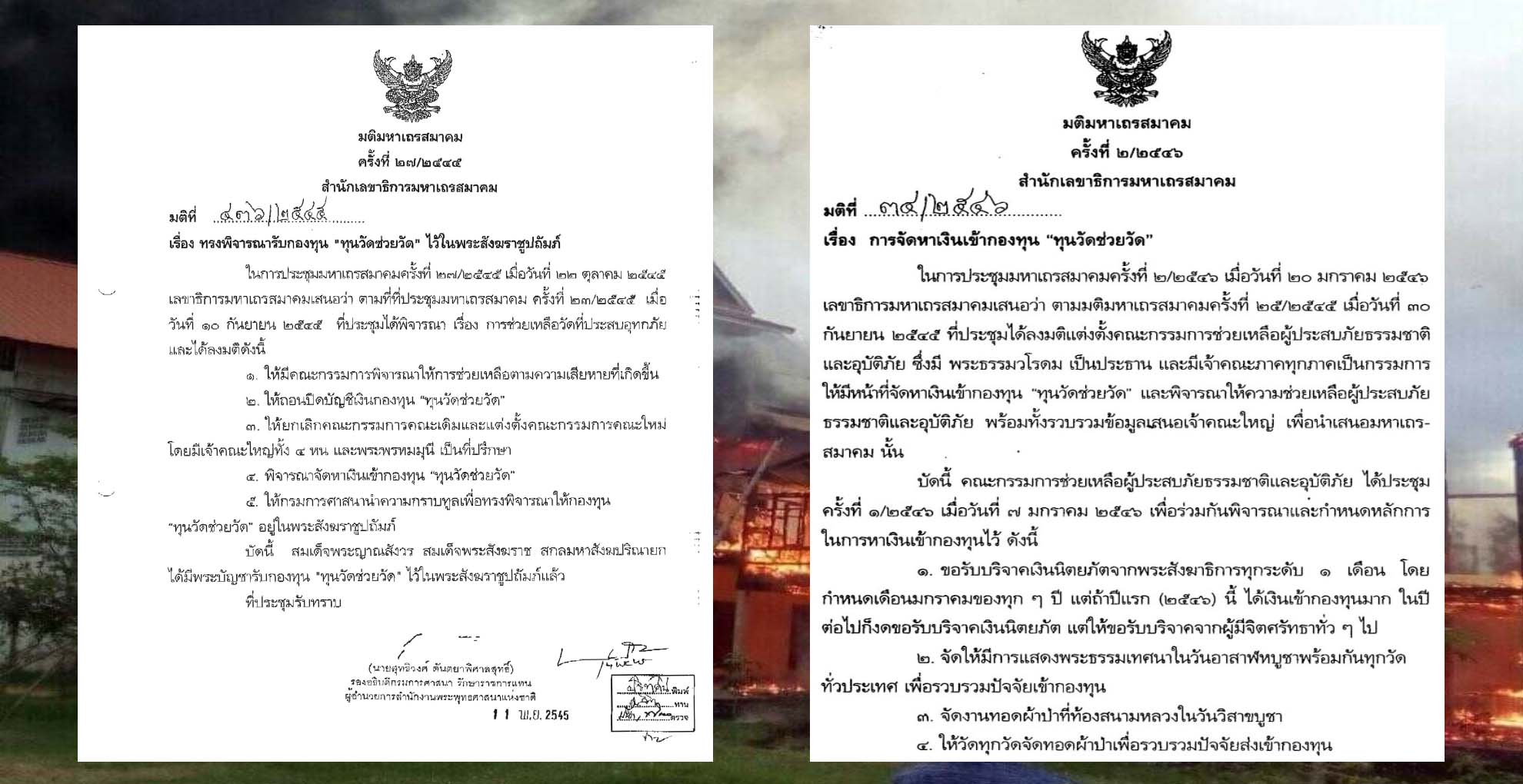 “ผู้เขียน” เคยสอบถาม “แหล่งข่าว” พอสรุปใจความได้ว่า ทุกอย่างมีกฎระเบียบอยู่แล้ว มหาเถรสมาคมตั้งคณะกรรมการเรียบร้อยแล้ว ในปี 2562 เงินกองทุนวัดช่วยวัดมีอยู่ประมาณ 120 ล้านบาท ณ ตอนนี้คงมีมากกว่านี้ ซึ่งจากกองทุนตรงนี้เจ้าคณะจังหวัดโดยความเห็นชอบของเจ้าคณะภาคมีอำนาจเบิกงบได้ครั้งละไม่เกิน 1 แสนบาท แต่ต้องสำรองจ่ายไปก่อน ส่วนประธานและรองประธานสำรองจ่ายได้ครั้งละไม่เกิน 5 แสนบาท เมื่อถามต่อว่า ทำไมตอนนี้กองทุนเงินวัดช่วยวัด จึงไม่นำเงินที่มีร้อยกว่าล้านบาทที่เป็นเงินของคณะสงฆ์แท้ ๆ ออกมาช่วยเหลือพระภิกษุสงฆ์ วัดที่ประสบภัยไฟไหม้ หรือตอนน้ำท่วมบ้าง