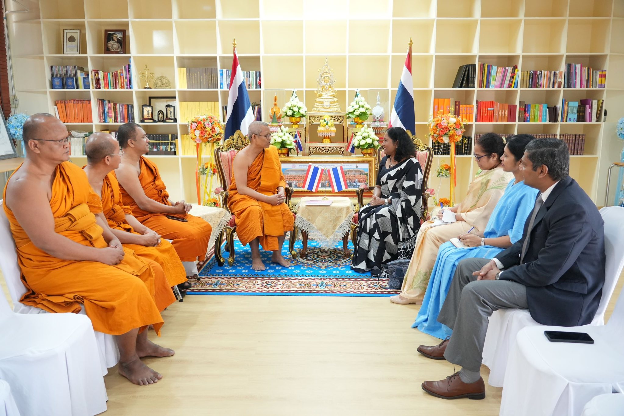 วันพุธที่ ๑๔ มกราคม พ.ศ.๒๕๖๙ เวลา ๐๙.๒๙ น. Her Excellency Mrs. Wijayanthi Edirisinghe, Ambassador, Embassy of Sri Lanka to the Kingdom of Thailand ฯพณฯเอกอัครราชทูตศรีลังกา ประจำประเทศไทย เข้าเยี่ยมคารวะ พระสิทธิวัชรบัณฑิต รองอธิการบดีฝ่ายกิจการต่างประเทศ มจร ณ ห้องรับรองศูนย์อินเดียศึกษา (Bharat Studies Center) มจร พระนครศรีอยุธยา