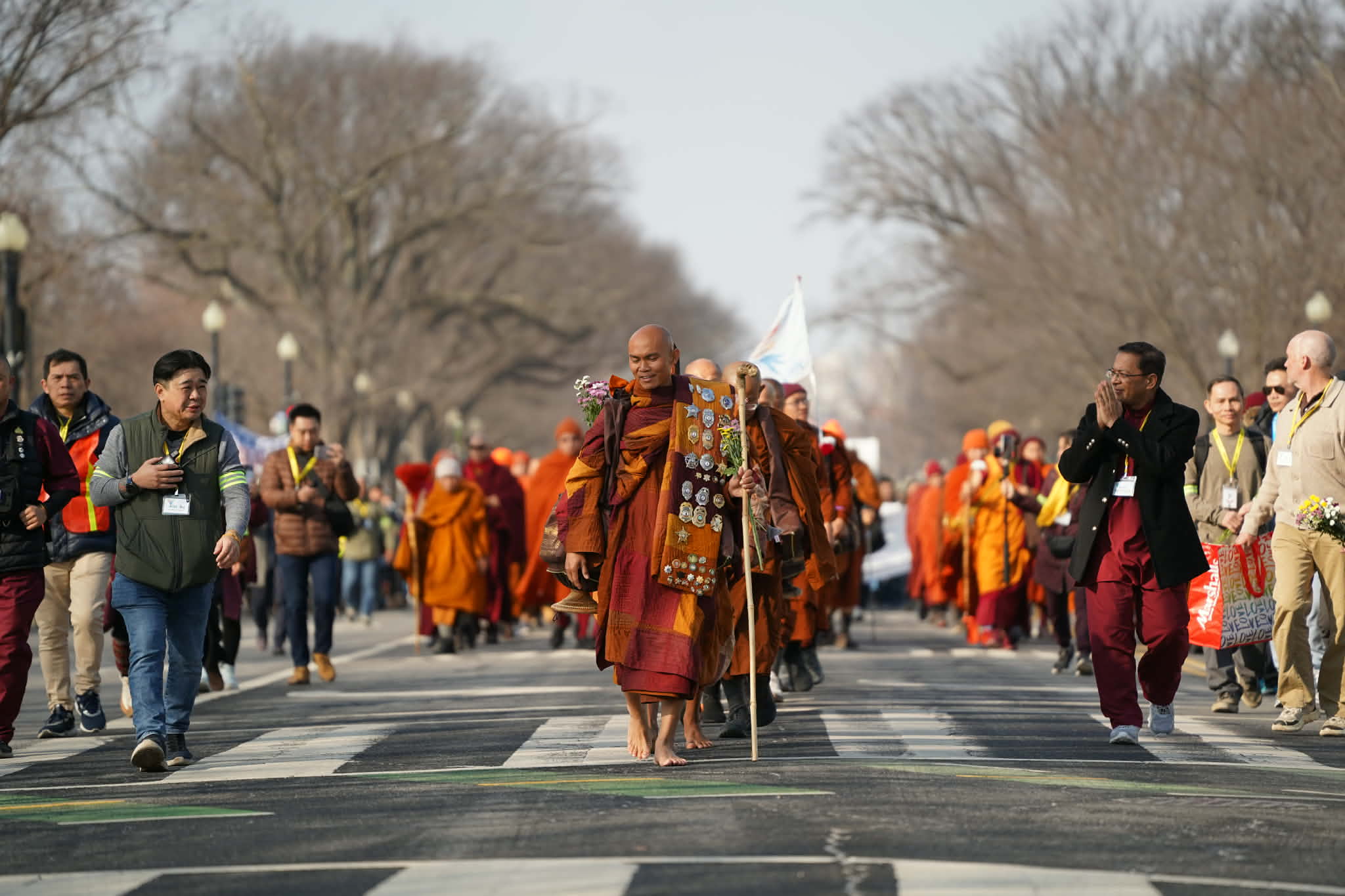 วันที่ 12 กุมภาพันธ์ 2569 คณะพระภิกษุจำนวน 19 รูป (พระไทย ลาว พม่า เวียดนาม ศรีลังกา) ในโครงการเดินธุดงค์เพื่อสันติภาพ (Walk for Peace) ตั้งแต่วันที่ 26 ตุลาคม 2568 ณ วัดพุทธหวงเต๋า เมืองฟอร์ตเวิร์ธ รัฐเท็กซัส ถึงวอชิงตัน ดี.ซี. รวมระยะทางกว่า 3,700 กิโลเมตร เป็นที่เรียบร้อยแล้ว ท่ามกลางคณะสงฆ์นานาชาติ ผู้แทนศาสนาอื่น ๆ และประชาชนนับหมื่นคนแห่ถวายการต้อนรับด้วยความอบอุ่น เส้นทางต่อไปคณะนี้จะออกจากมหามหาวิทยาลัยจอร์จ วอชิงตัน ในกรุงวอชิงตัน ดี.ซี. มุ่งหน้าไปยังอนุสาวรีย์สันติภาพ/แคปิตอลฮิลล์