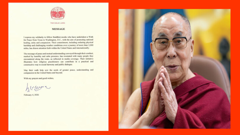 วันที่ 14 กุมพาพันธ์ 2569 องค์ดาไลลามะ ผู้นำด้านจิตวิญญาณของทิเบต ได้ส่งสารแสดงความชื่นชมต่อกลุ่มพระภิกษุสงฆ์เดินเพื่อสันติภาพ ในประเทศสหรัฐอเมริกา โดยมีความว่า