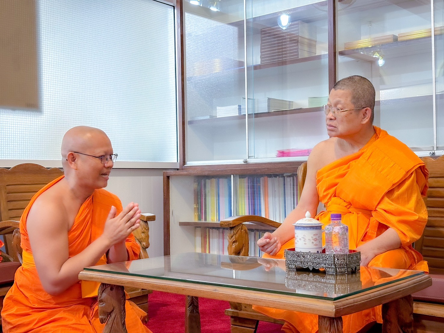 วันที่ 15 กุมภาพันธ์ 2569 เวลา 18.10 น. ณ สำนักงานกำกับดูแลพระธรรมทูตไปต่างประเทศ พระพรหมโมลี เจ้าอาวาสวัดปากน้ำภาษีเจริญ กรรมการมหาเถรสมาคม ในฐานะประธานสำนักงานกำกับดูแลพระธรรมทูตไปต่างประเทศ ได้ต้อนรับ พระสิทธิวัชรบัณฑิต รองอธิการบดีฝ่ายกิจการต่างประเทศ ประธานคณะกรรมการดำเนินงานโครงอบรมพระธรรมทูตสายต่างประเทศ มจร น้อมถวายสักการะ และ กราบถวายรายงาน การดำเนินงานโครงการอบรมพระธรรมทูตสายต่างประเทศ โดยมี พระพรหมวัชรธีราจารย์ อธิการบดี มหาวิทยาลัยมหาจุฬาลงกรณราชวิทยาลัย พระศรีวัชรศาสตรบัณฑิต รองอธิการบดีฝ่ายประชาสัมพันธ์ มจร พระครูสุตรัตนบัณฑิต ผอ.วิทยาลัยพระธรรมทูต มจร ร่วมถวายรายงานเกี่ยวกับงานพระธรรมทูต