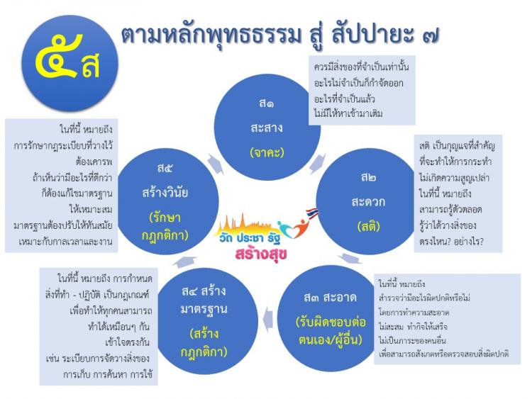 โครงการวัด ประชา รัฐ สร้างสุข เกิดขึ้นเมื่อปี 2563 เป็นหนึ่งในโครงการของแผนปฏิรูปกิจการพระพุทธศาสนา โดยฝ่ายสาธารณูปการของมหาเถรสมาคม มีมติเห็นชอบให้ดำเนินการเพื่อพัฒนาวัดให้เป็นสถานที่สัปปายะ เป็นแหล่งเรียนรู้ทางพระพุทธศาสนา และเป็นรมณียสถานอันเป็นความสงบทางจิตใจของพุทธศาสนิกชน โครงการนี้มีป้าหมายสำคัญ คือ การส่งเสริมให้มีเกิดการขับเคลื่อนกิจกรรมและองค์ความรู้ 5 ส. ไปสู่การปรับปรุงสภาพภูมิทัศน์ การจัดการสิ่งแวดล้อม และรักษาความสะอาดภายในวัดและชุมชน สถาบันการศึกษาให้ถูกต้องตามสุขลักษณะ และการพัฒนาการเรียนรู้ทางสังคมวิถีพุทธ และการมีจิตอาสาเพื่อการพัฒนาสังคมที่ยั่งยืน