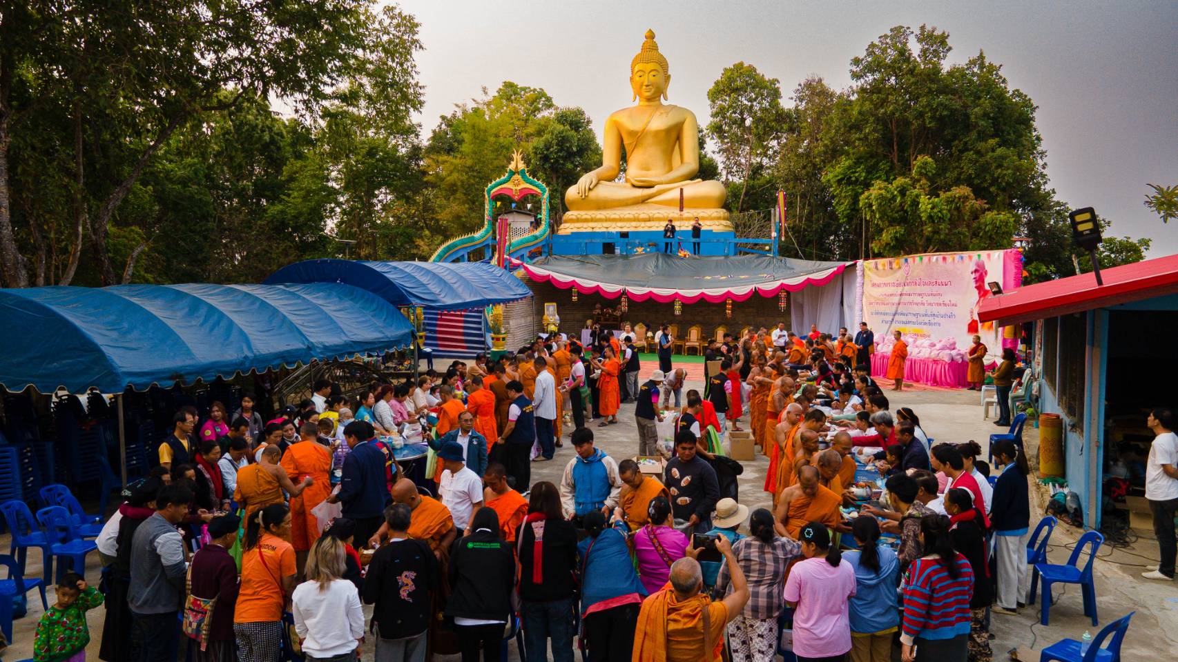 “พระสหัสวรรษ สุทฺธสทฺโธ” พระบัณฑิตอาสาสำนักสงฆ์บ้านขุนแหง อ.งาว จ.ลำปาง บอกว่า สำหรับสำนักสงฆ์บ้านหุนแหง เป็นชุมชนใหญ่ มีทั้งอิวเมี่ยนและไทลื้อ รวมทั้งคนเมือง คนที่นี้เขาเอาความเป็นหมู่บ้านเป็นหลัก ไม่เลือกว่าเป็น คริสต์ หรือเป็นพุทธ เวลาวัดมีกิจกรรมเขามาร่วมได้หมด อย่างตรุษจีนชุมชนเขาก็จัดผ่าป่ามาถวายให้กับวัด วันพระ วันออกพรรษา มาหมด บิณฑบาตคนใส่กันมาก ฉันไม่หมด ซึ่งอาหารที่เหลือก็แจกจ่ายให้กับประชาชนที่มาขอ บางคราวก็ให้ผู้สูงอายุ ผุ้ป่วยติดเตียง