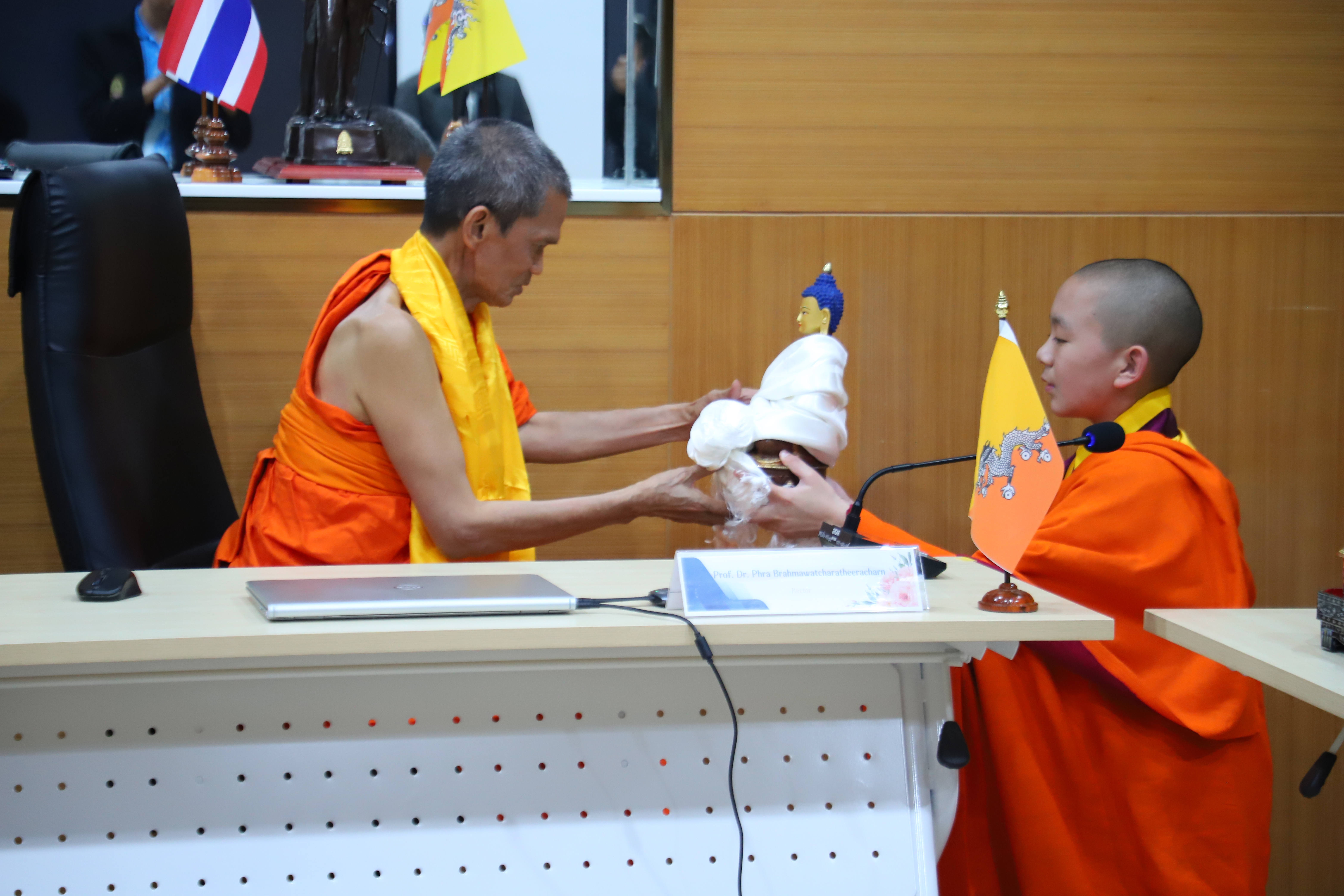 พร้อมกันนี้ H.E.Kinzang Dorji, Ambassador Extraordinary and Plenipotentiary of Bhutan to Thailand and Permanent Representative of UNESCAP ฯพณฯ เอกอัครราชทูตภูฏาน ประจำราชอาณาจักรไทย ได้กราบขอบพระคุณ พระพรหมวัชรธีราจารย์ อธิการบดี และ คณะผู้บริหารมหาวิทยาลัย ที่ถวายการปฏิสันถาร His Eminence Vairochana Rinpoche Jigme Jigten Wangchuk อย่างสมพระเกียรติ และยังอาราธนา อธิการบดี และ รองอธิการบดีฝ่ายกิจการต่างประเทศ เดินทางเยือนราชอาณาจักภูฏานในปี ๒๕๖๙ เพื่อกระชับสัมพันธไมตรีระหว่าง มจร และ คณะสงฆ์ภูฏานให้เจริญแน่นแฟ้นสืบไป