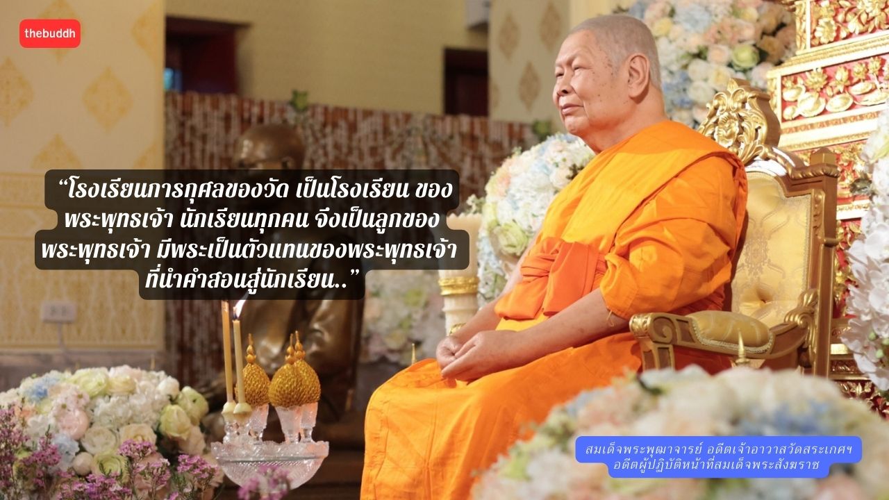 ที่มาคำว่า “ลูกพระพุทธเจ้า” เป็นคำที่ “สมเด็จเกี่ยว” สมเด็จพระพุฒาจารย์ อดีตเจ้าอาวาสวัดสระเกศ อดีตผู้ปฏิบัติหน้าที่สมเด็จพระสังฆราช ท่านพูดไว้ในคราวไปเปิดการสัมมนาโรงเรียนการกุศลของวัด ณ โรงเรียนวินิตศึกษา ในพระบรมราชูปถัมภ์ อ.เมือง จ.ลพบุรี เมื่อวันศุกร์ที่ 28 สิงหาคม 2552 ว่า “โรงเรียนการกุศลของวัดเป็นโรงเรียนของพระพุทธเจ้า นักเรียนทุกคนจึงเป็นลูกของพระพุทธเจ้า มีพระเป็นตัวแทนของพระพุทธเจ้า ที่นำคำสอนสู่นักเรียน ยิ่งนักเรียนมีความเข้าเรื่องหลักธรรม นำหลักธรรมของพระพุทธศาสนามากใช้เท่าไร จะนำมาซึ่งความมั่นคงของสถาบันหลักทั้ง 3 สถาบัน ไม่เฉพาะแต่สถาบันพระพุทธศาสนาเท่านั้น ทำอย่างไรโรงเรียนการกุศลของวัดที่มีอยู่เกือบ 100 แห่ง จะประสานการทำงานไปในทิศทางเดียวกัน ภายใต้แนวความคิดที่ว่า โรงเรียนการกุศลของวัด เป็นโรงเรียนของพระพุทธเจ้า”
