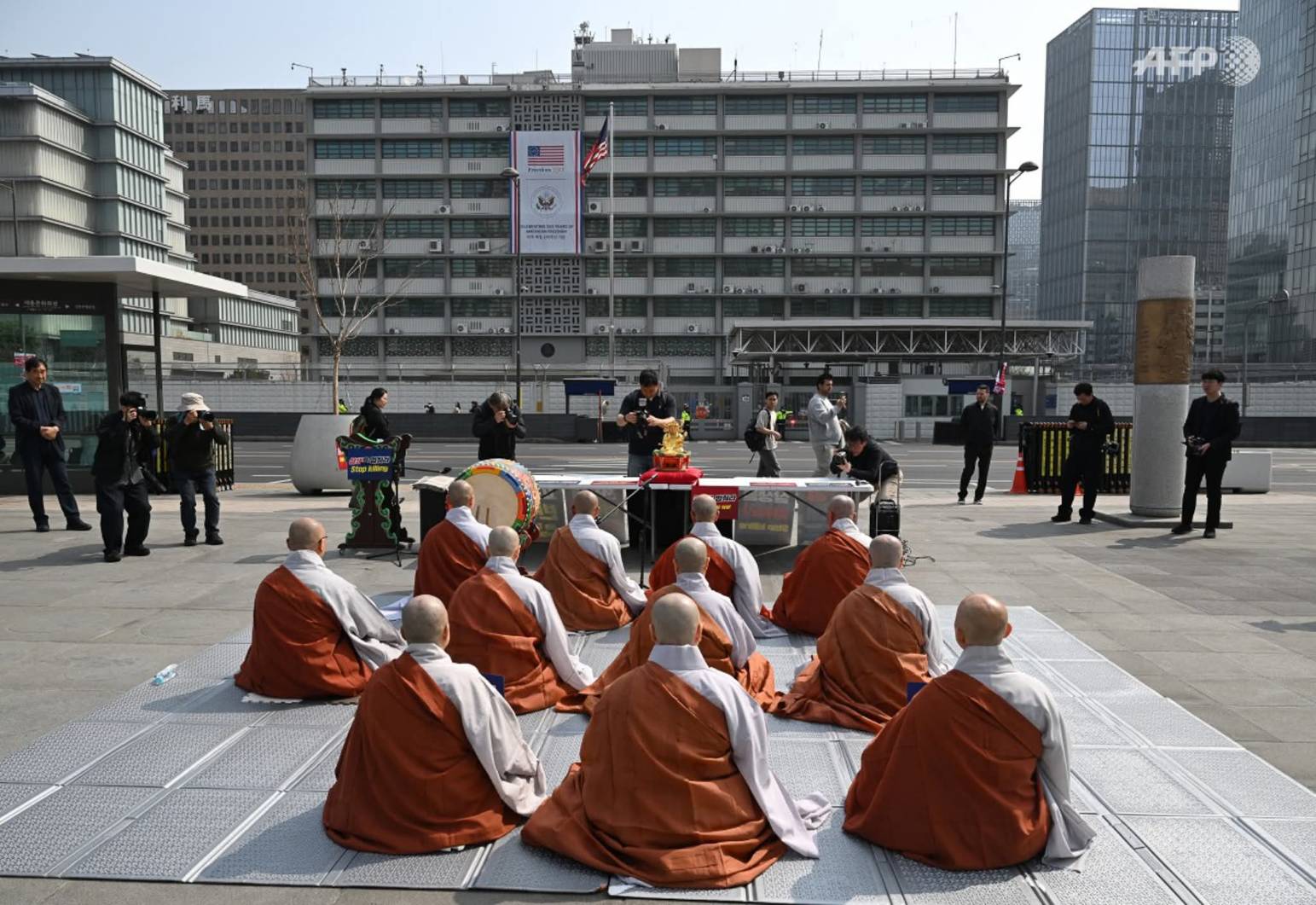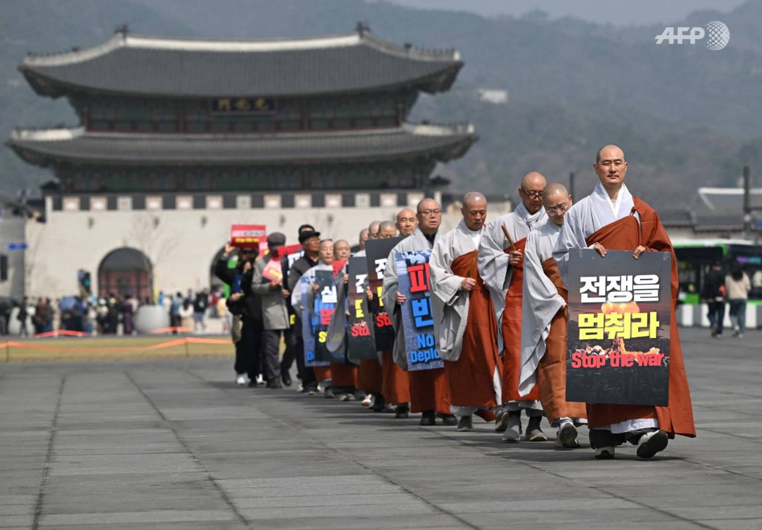 วันที่ 27 มีนาคม 2569 วานนี้ พระสงฆ์ชาวพุทธในเกาหลีใต้รวมตัวจัดกิจกรรมสวดมนต์และชุมนุมเชิงสัญลักษณ์ บริเวณหน้าสถานทูตสหรัฐอเมริกาในกรุงโซล เพื่อแสดงจุดยืนคัดค้านสงครามในอิหร่าน และเรียกร้องให้ยุติความรุนแรง